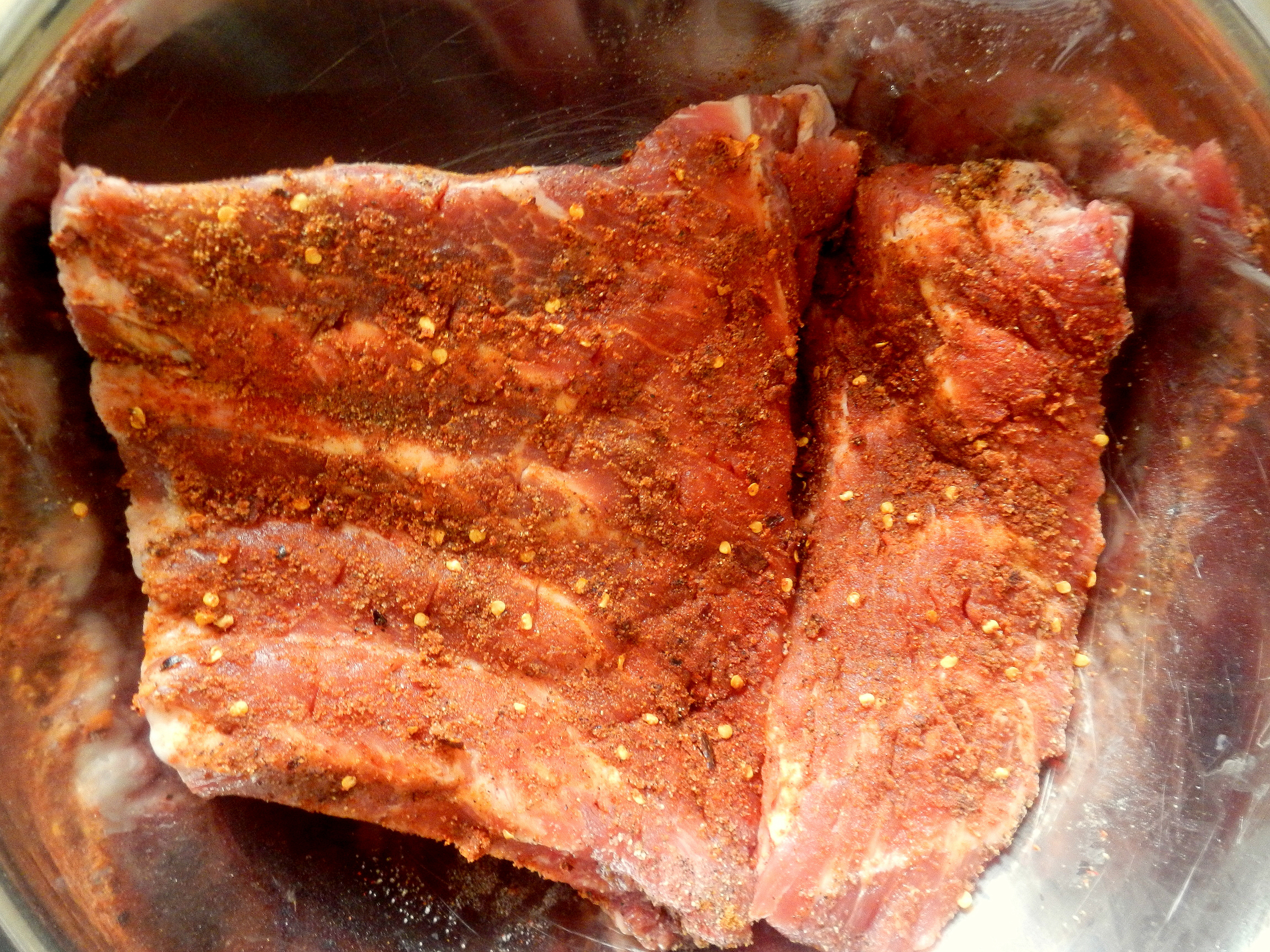 We took a trip to our neighborhood grocery store, and walking down the meat aisle, came across some nice looking pork ribs for an even nicer looking sale price (and with our Amex offer, would essentially be free). We had never bought spare ribs to make at home, but decided that it was the perfect opportunity to try it.
